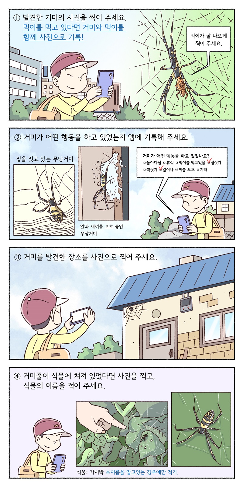 다음 중 거미를 발견했을 때 찍어야 하는 것을 모두 고르세요.