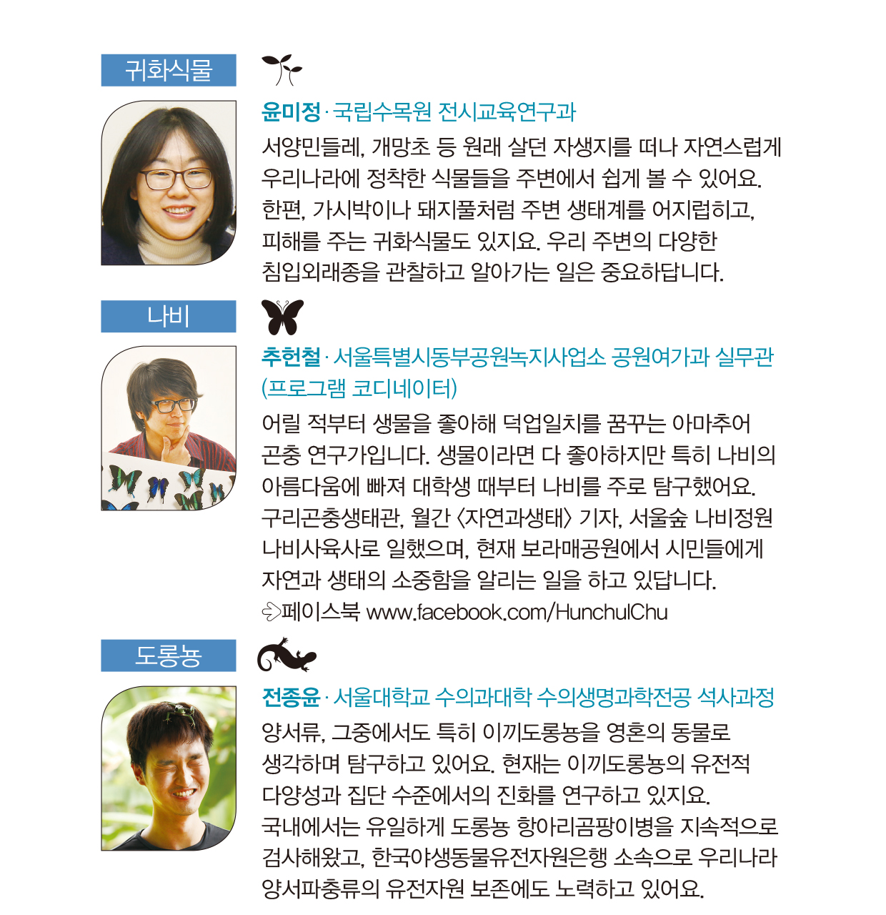 연구자 소개부터 생물종 소개, 탐사 방법,