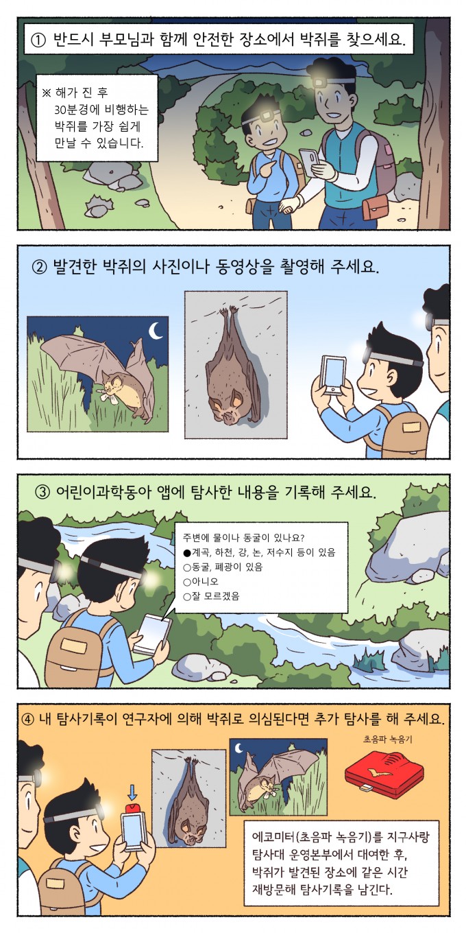 방법에 따라 박쥐 탐사기록을 모은 후 공유해주세요!