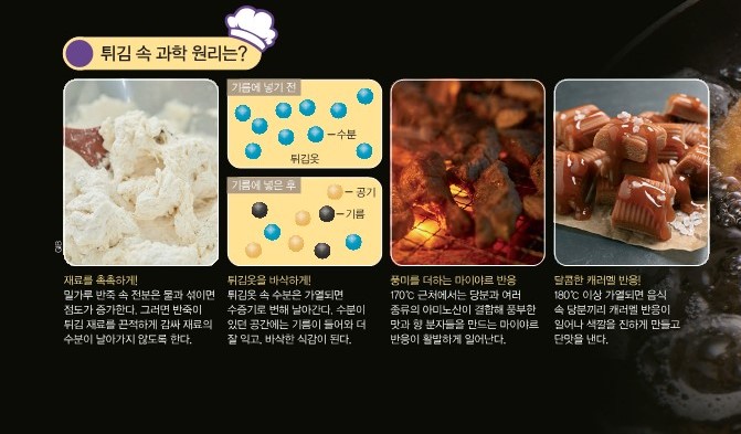 고민하다가 튀김에 들어간 과학적인 원리를 설명하고 튀김의 역사도 소개하게 됐어요.