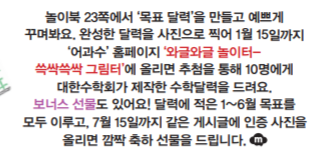그리고 깜짝 이벤트!!!!! 놀이북 23쪽에서 '목표 달력'을 만들고 예쁘게 꾸민 다음 댓글에 남겨주세요~!