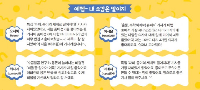 ♥ 이예서 독자님도 특집 기사를 가장 재미있게 읽으셨네요. ^^ 종이의 세계는 정말 무궁무진하죠!