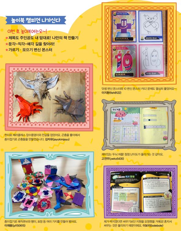 4월 22일(금)까지 이 게시글의 댓글란에 놀이북 활동 사진을 남겨주세요.