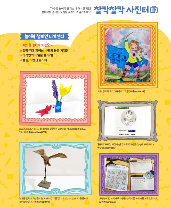 5월 9일(월)까지 이 게시글의 댓글란에 놀이북 활동 사진을 남겨주세요.