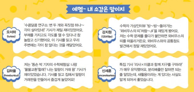 ♥ 신세훈 독자님은 재활용과 새활용 이야기를 담은 특집 기사가 유익하셨군요!
