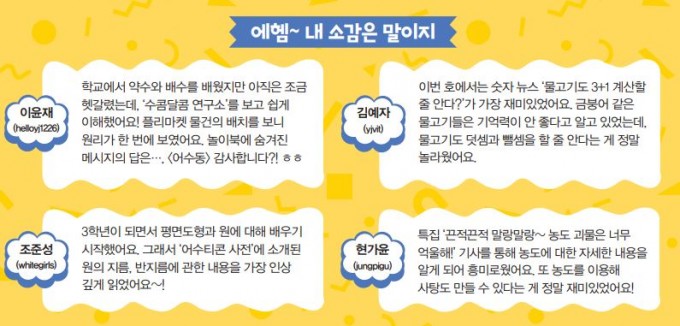 ♥ 김예자 독자님은 <어수동> 10호에서 숫자 뉴스 기사를 가장 재미있게 읽으셨군요.