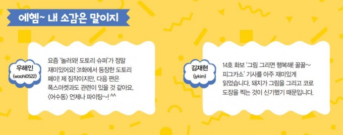 이번 호에 멋진 작품이 소개된 열혈 독자들을 함께 소개합니다!