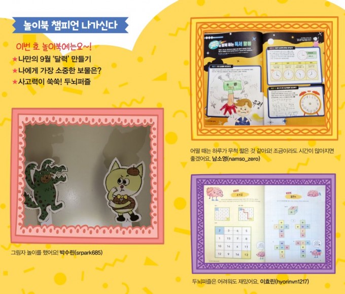* 9월 15일(목)까지 이 게시글의 댓글란에 놀이북 활동 사진을 남겨주세요. *