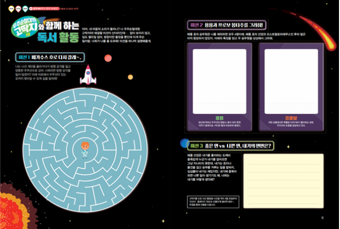 '우주순찰대원 고딱지와 함께 하는 독서 활동'의 미션 3가지를 해결한 뒤 사진을 찍어 올려주세요!