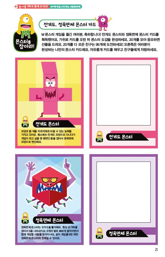 전개도, 정육면체 몬스터와 재밌는 게임을 즐기고 몬스터 카드도 얻었나요?