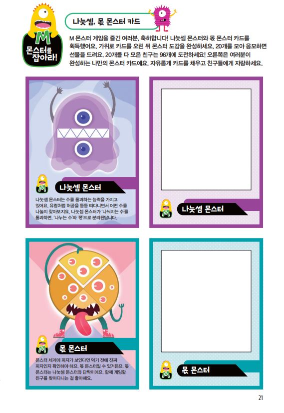 나눗셈, 몫 몬스터와 재밌는 게임을 즐기고 몬스터 카드도 얻었나요?
