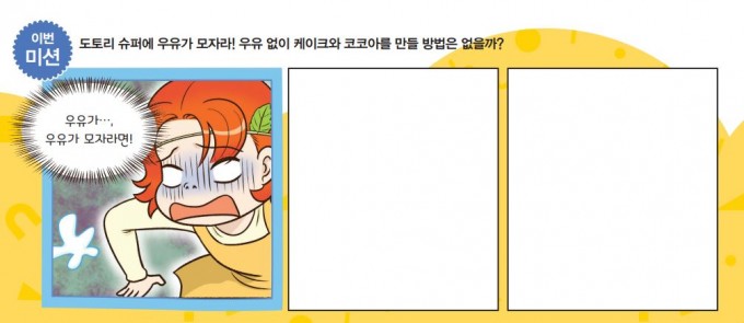 도토리 슈퍼에 우유가 모자라! 우유 없이 케이크와 코코아를 만들 방법은 없을까?