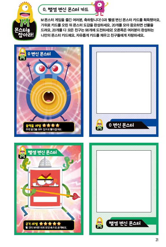 0, 뺄셈 변신 몬스터를 마음껏 상상해서 그려주세요.