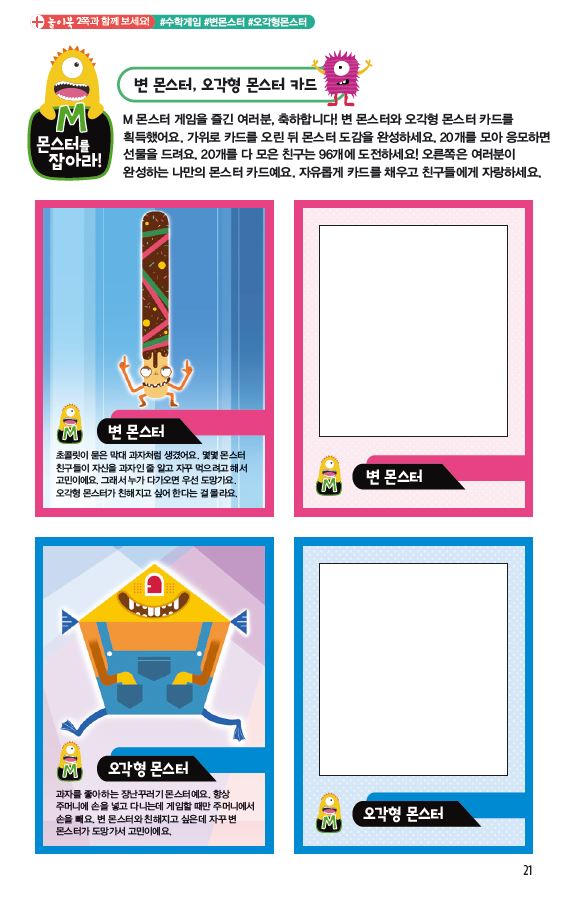 변 몬스터와 오각형 몬스터를 마음껏 상상해서 그려주세요.