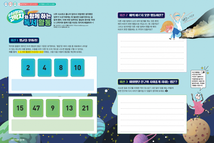 <어린이수학동아> 10월 1일자 놀이북에 실린 미션 활동 3가지를 완성한 뒤