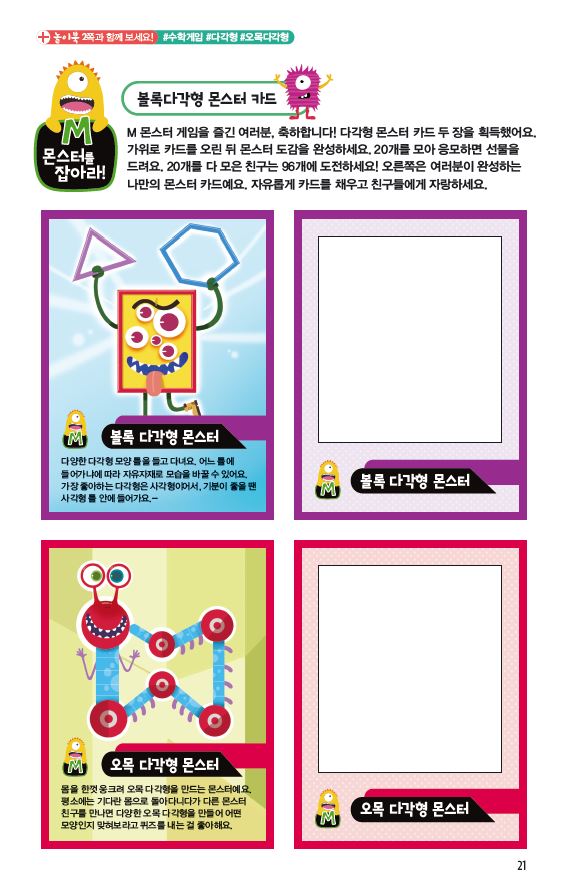 다각형 몬스터와 재밌는 게임을 즐기고 몬스터 카드도 얻었나요?