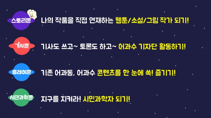 시민과학콘에서는 지구사랑 탐사대의 탐사 기록을 올리고 우동수비대 관찰 기록을 남길 수 있어요.