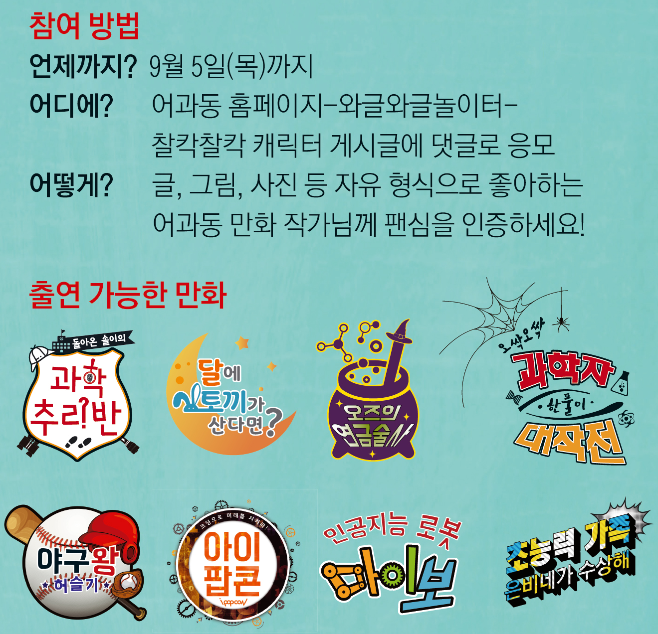 한 명씩 선발할 예정이에요.(만화 당 1명씩)
